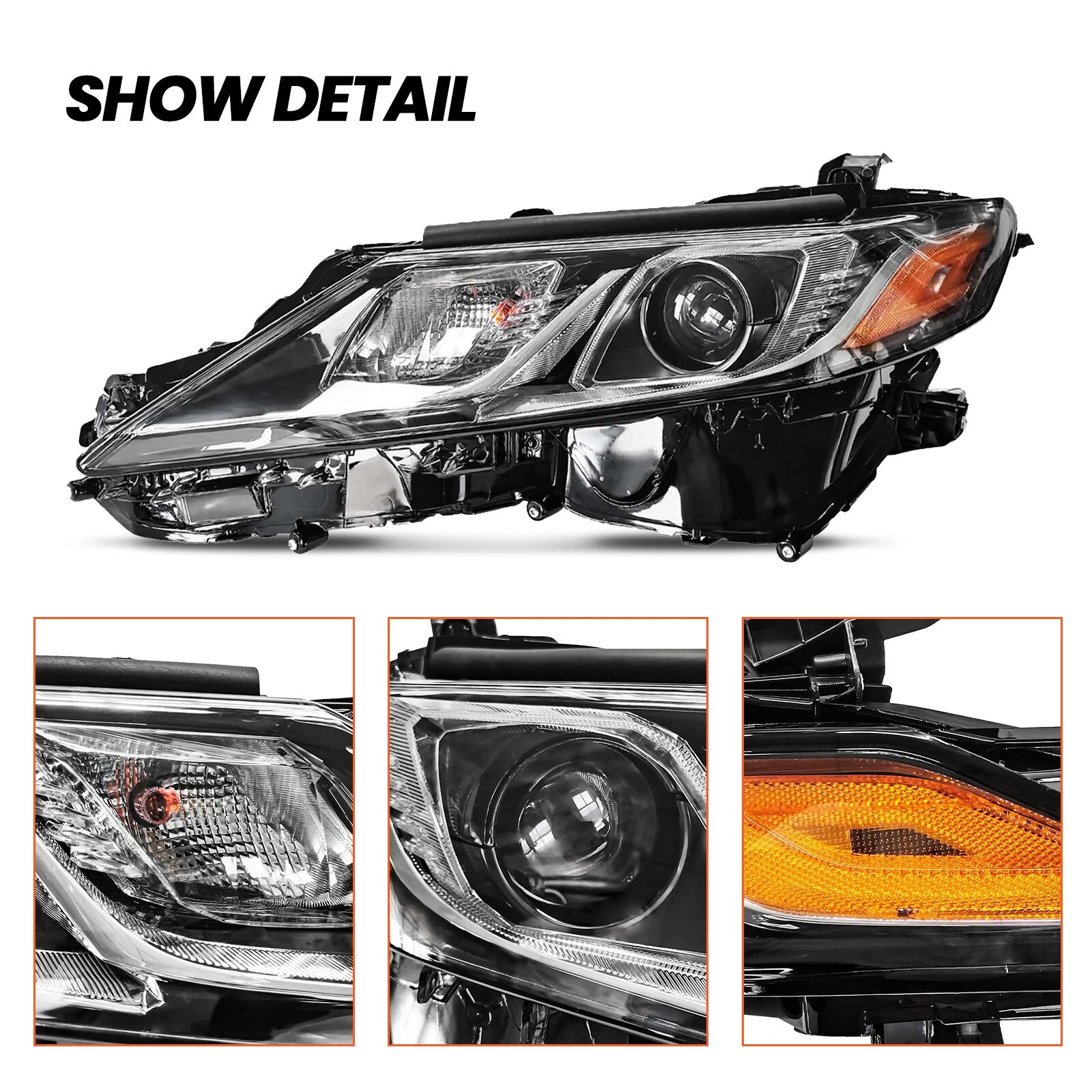 2018-2022 Toyota Camry Halogen Headlights Pair Chrome – DOT Approved